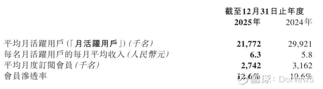 同时,每名月活跃用户的每月平均收入在2025年增加至6.3元,较上年同期提升8.9%。