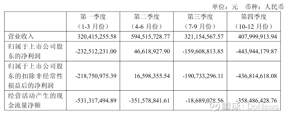 沐曦股份2025年第四季度营收为4.08亿元,净亏损为4.44亿元,扣非后净亏损为4.36亿元,经营活动产生的现金流出为3.58亿元。