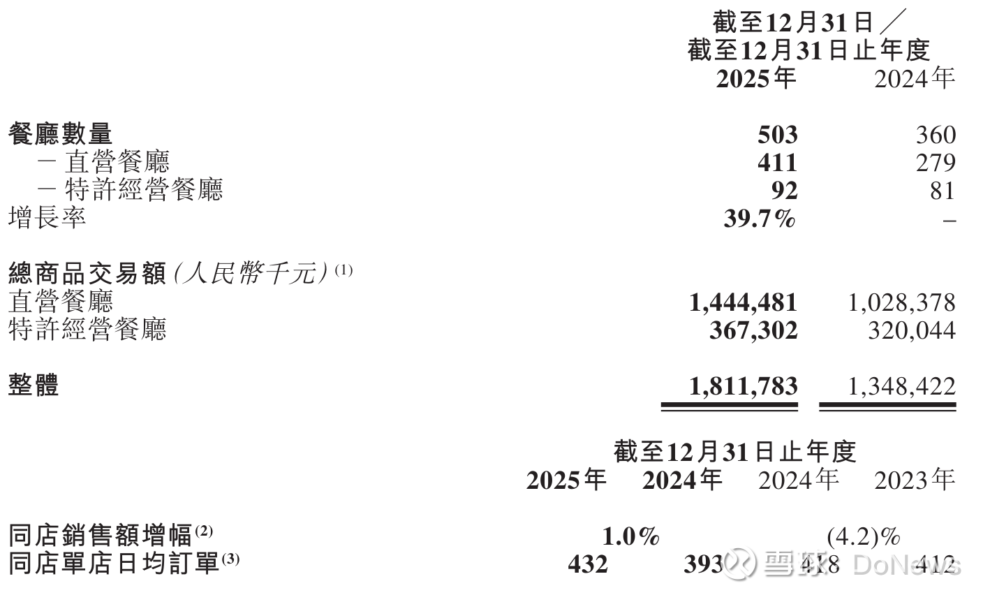 截至2025年12月31日,遇见小面餐厅数量为503家,其中,直营餐厅411家,特殊经营餐厅92家。