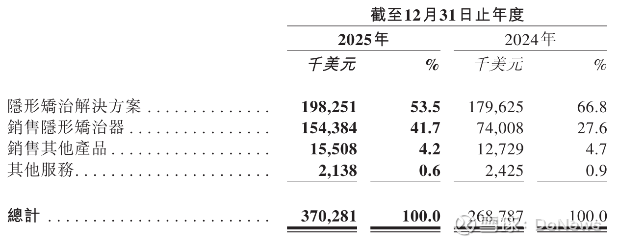 时代天使2025年隐形矫治解决方案1.98亿美元,占营收的比例为53.5%;上年同期为1.8亿美元,占营收的比例为66.8%。