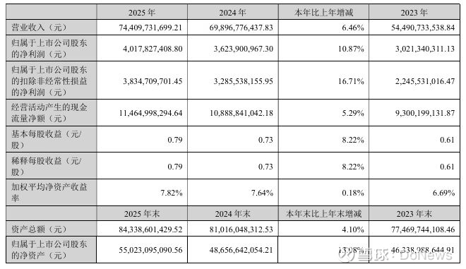 DoNews3月30日消息,蓝思科技今日发布公告,2025 年实现营业收入 744.1 亿元,同比增长 6.46%;归属于上市公司股东的净利润 40.18 亿元,同比增长 10.87%;基本每股收益 0.79 元。