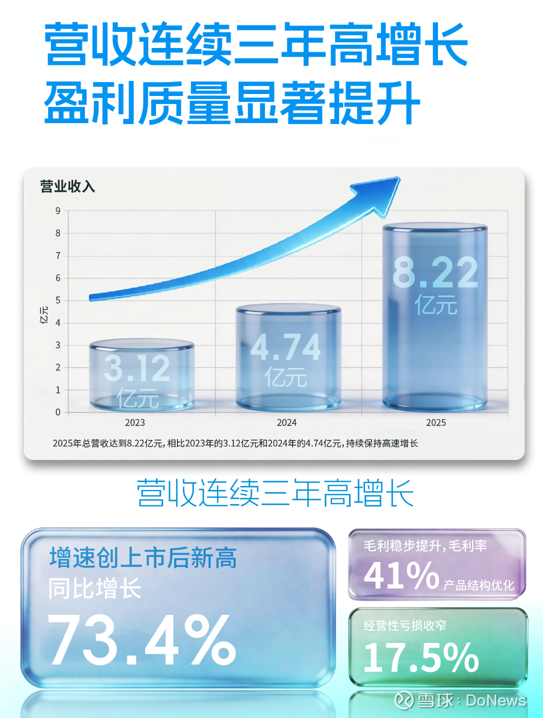 财报显示,黑芝麻智能2025年营收8.22亿元,同比增长73.4%,连续三年保持高速增长态势,增速更是大幅跑赢行业平均水平;⽑利亦同比增长71.1%至3.37亿元,毛利率为41.0%保持稳定。