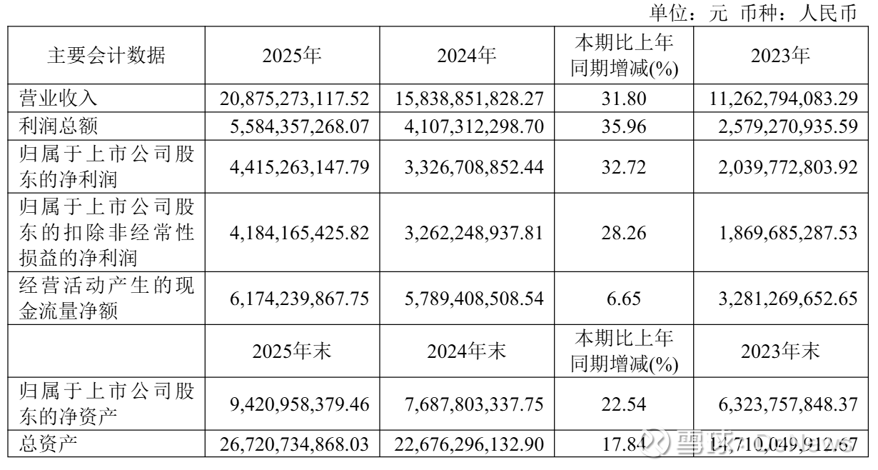 东鹏饮料2025年净利44.15亿,较上年同期的33.27亿元增长32.72%;扣非后净利为41.84亿元,较上年同期的32.62亿元增长28.26%。