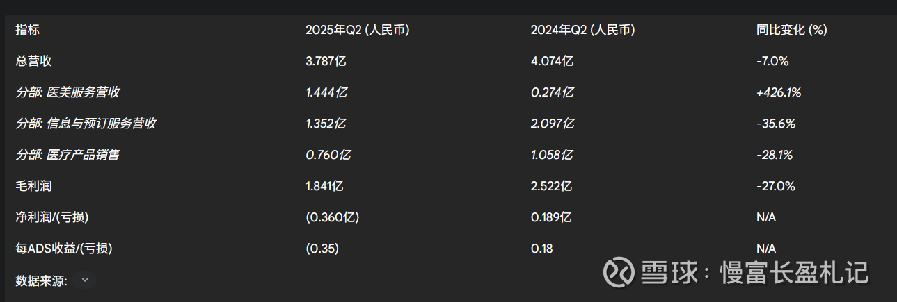 关键财务数据: 总营收同比下降7%,至3.787亿元人民币。更关键的是,公司从2024年同期的净利润1890万元人民币,转为2025年第二季度的净亏损3600万元人民币 7。