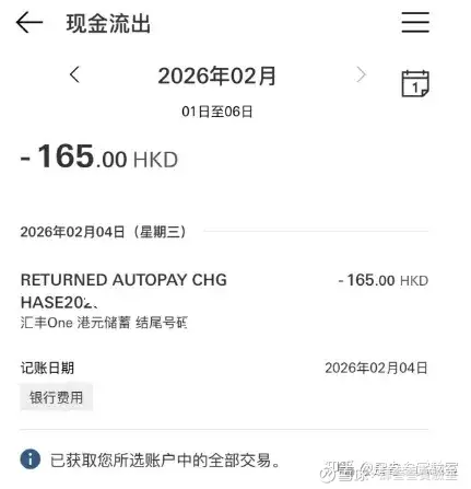 因为这个被汇丰扣了165HKD的手续费,真贵啊,每次换港币为了更好的汇率转来转去,几次省的一次全给汇丰了,中银香港EDDA入金失败都不会收手续费,以后多用中银入金,少用汇丰入金。