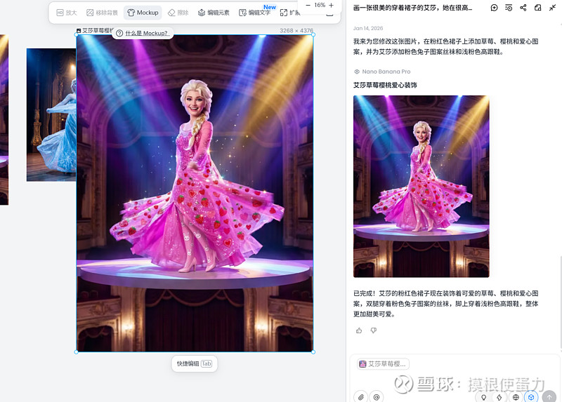今晚用Lovart给4岁小女儿自己思考和讲出来的提示词画了几幅冰雪奇缘艾莎的图片,确实非常好用,大模型对语言的理解和刻画都比较在线,审美也很好。不知道这么多AI生成类创意工具实际上是否都在冲击adobe的护城河,感觉真的有些担忧。$Adobe(ADBE)$