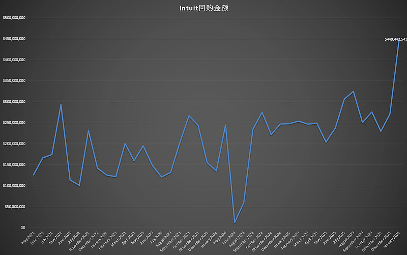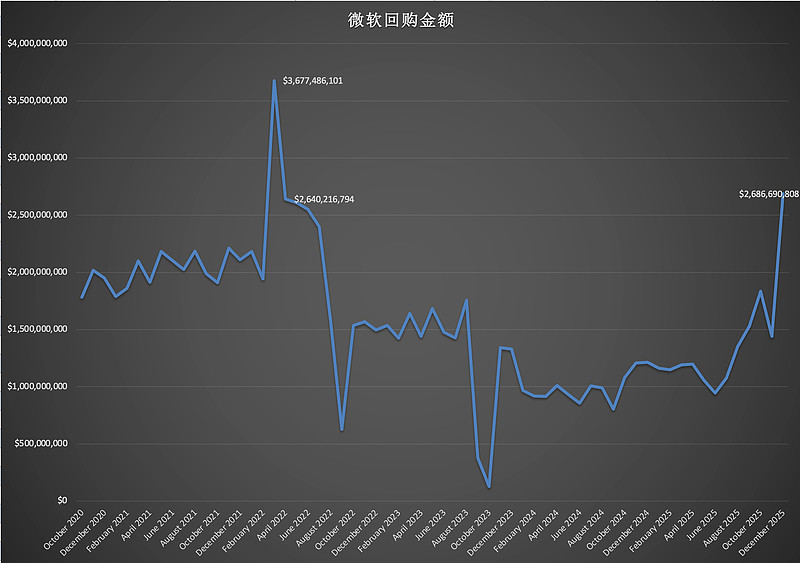 不管是微软还是财捷,回购金额都创了过去5年的新高(微软最新的回购数据还没更新,看起来是第二高)。