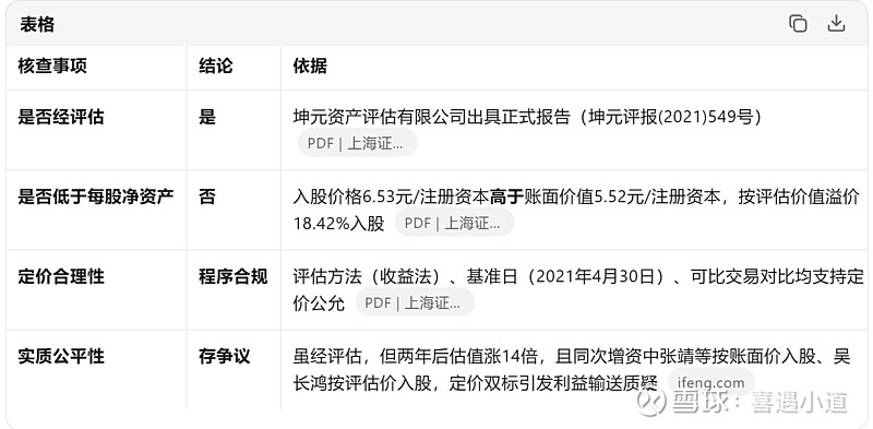 最终结论:从形式合规角度,吴长鸿2021年12月入股履行了评估程序、按评估价值定价、未低于每股净资产,符合当时《公司法》及国资监管要求;但从实质公平角度,该定价较同期内部人(张靖)激励价格高出18.42%,且较2023年外部投资者价格低90%,存在估值套利空间,这也是上交所两轮问询重点关注的内容。