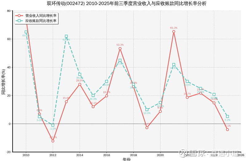 核心结论:双环传动经营现金流呈持续高增 + 质量优异态势,2021-2024 年净额复合增速达36.2%;净现比长期大于 1.5,盈利现金保障极强;2025 年前三季度在营收同比下滑 4.1% 的背景下,经营现金流净额同比增长25.08%,主要源于主动收缩低毛利业务 + 毛利率提升 + 回款管理优化。