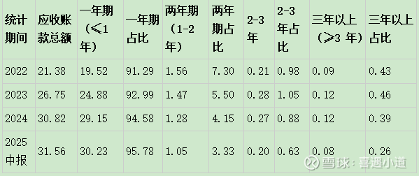 两年期占比逐年下降:从 2022 年 7.30% 降至 2025 年中报 3.33%,降幅超 50%,反映公司对 1-2 年账龄应收账款的催收力度加大,2024 年专门成立回款专项小组,针对该部分账款制定 “一户一策” 催收方案,有效降低中期应收账款占比。
