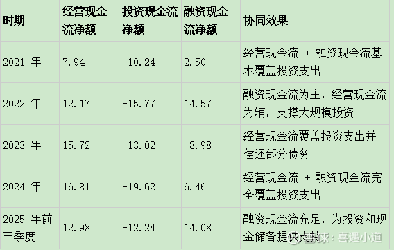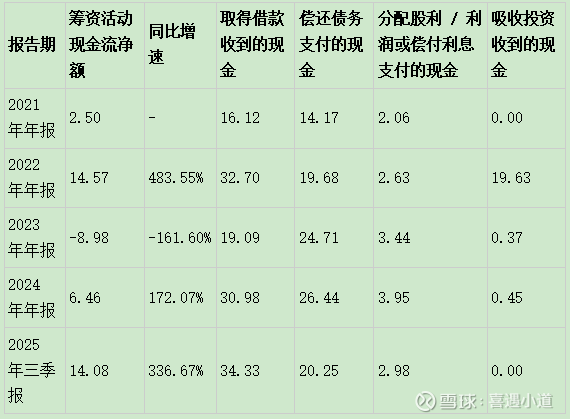 2024-2025 年:再扩张期,融资现金流净额由负转正并持续增长,2025 年前三季度达 14.08 亿元,主要依赖银行借款增加。