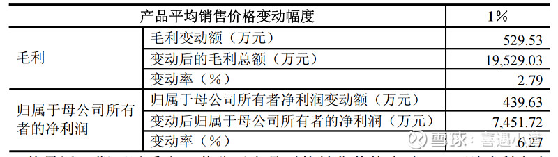 假设公司产品平均销售价格变动1%,则公司净利润、利润总额和毛利率的变动情况如下: