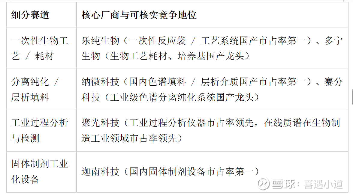 2、上游核心零部件 / 耗材:Protein A 亲和填料、高精度在线传感器、高性能超滤膜材进口依赖度超 80%,是核心 “卡脖子” 环节;
