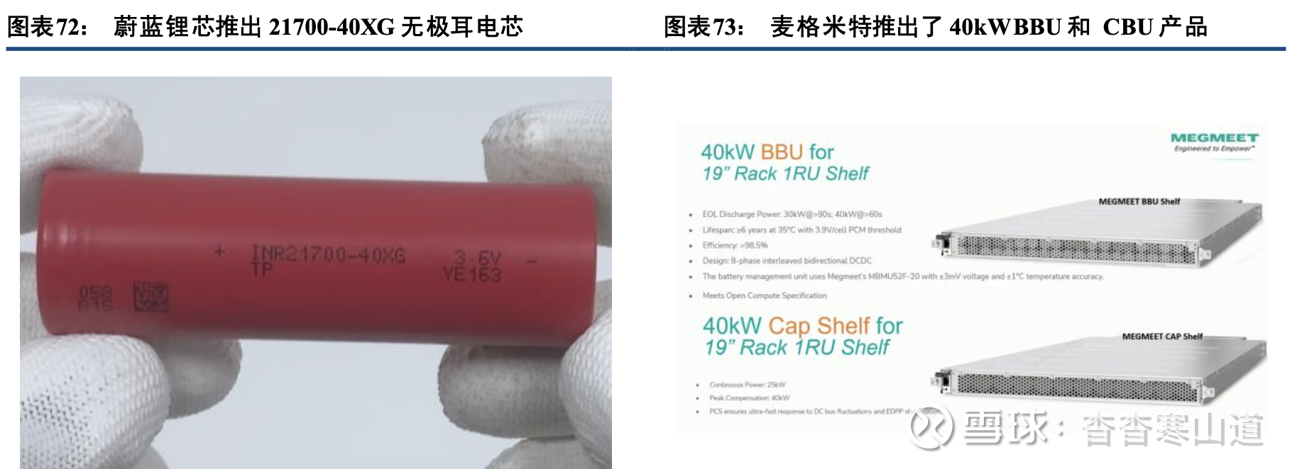 蔚蓝锂芯推出多种倍率型圆柱电芯,包括采用全新无极耳技术的21700-40XG、21700-50XG等产品, 在马来西亚投资的电池工厂2025年也已完成投产,共5条产线,应对海外圆柱电池需求,其中还包含1条 无极 耳电池产线。从用量来看,BBU的输出功率应与Power Shelf的输出功率相等。