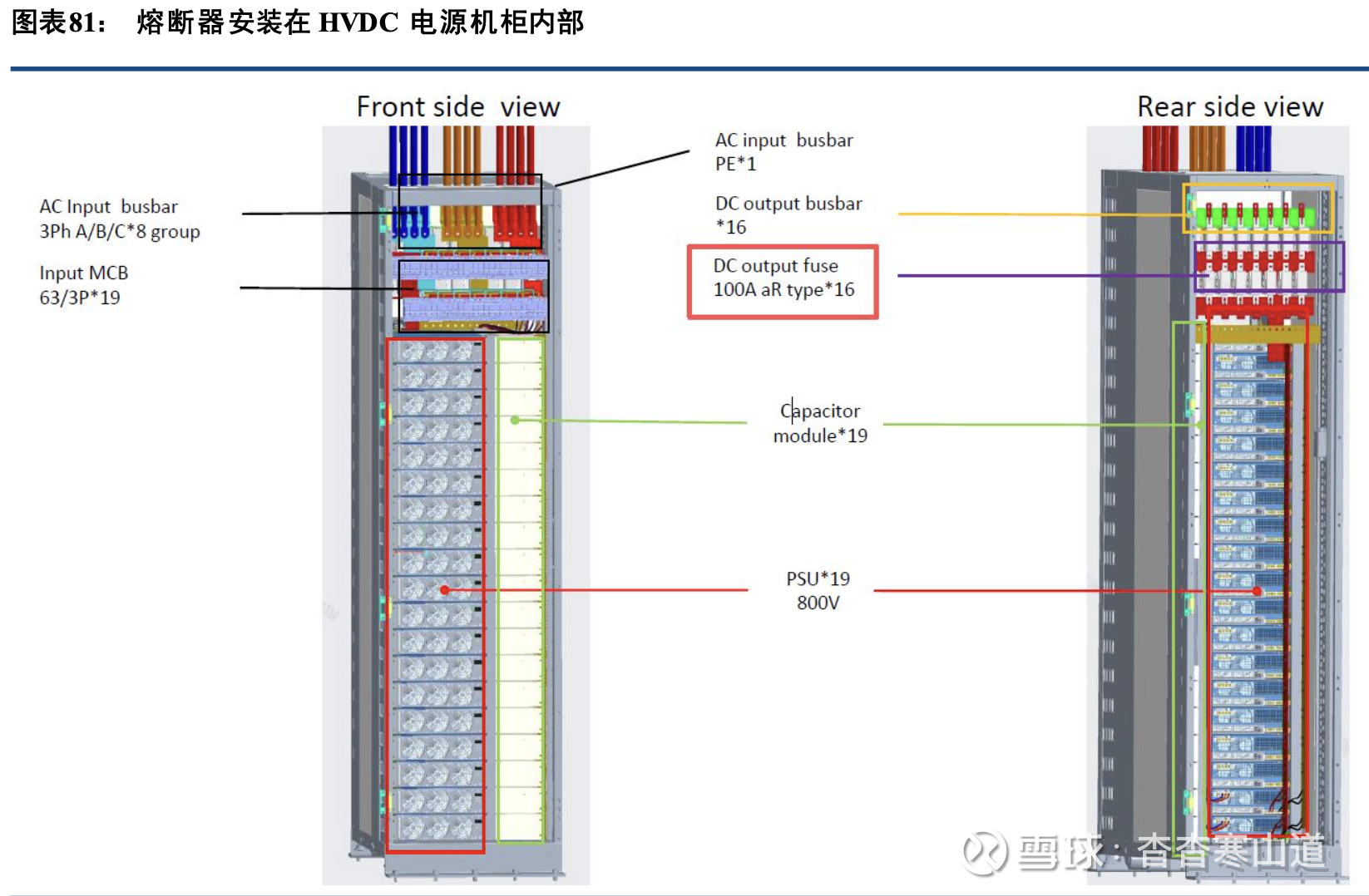 以上图为例,熔断器可布置在HVDC电源柜的直流出口,输出一共16条直流母线,共装设16只 熔断器 。