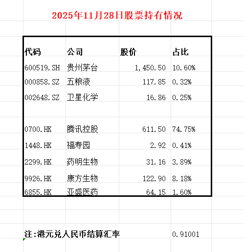当然,我的腾讯持股比例有些高了,等合适的时候打算用腾讯再换些贵州茅台,适当分散一下也是必要的。