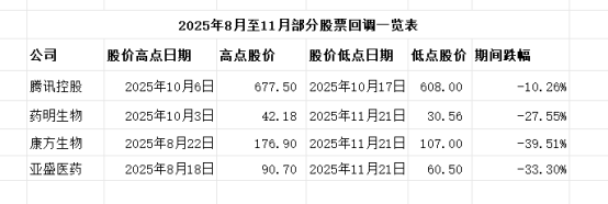 我持有的创新药,先是康方生物和亚盛医药在2025年8月份时创出了阶段新高,然后是药明生物在10月份创出了阶段新高。不过创出新高后都出现了一些回调。