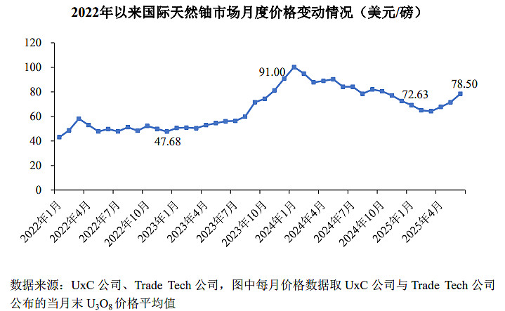 铀是自然界中能够找到的最重元素,其化学符号为 U,原子序数为 92,原子量为 238.03,属于锕系元素,外表呈银白色。铀同位素均不稳定,并以铀-238和铀-235 最为常见。铀具有硬度强、密度高、可延展、有放射性等特征,主要应用于核能发电领域,其同位素铀-235 是核能发电的重要燃料;此外还可以用于国防领域、生产医用同位素以及研究用反应堆燃料等。