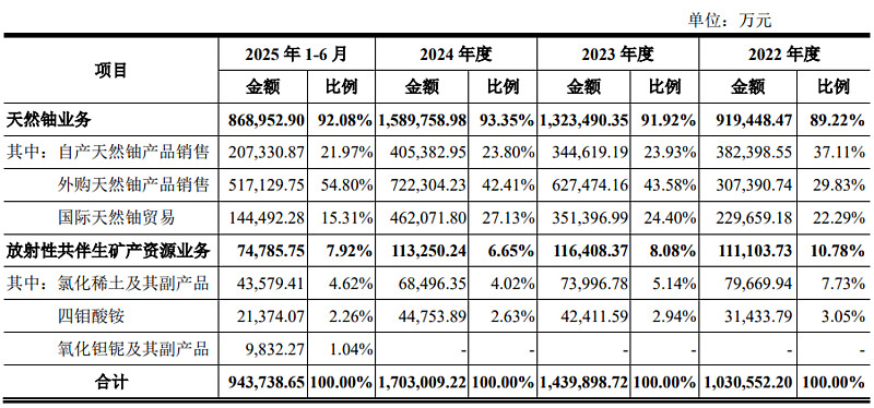 中国铀业是专注于天然铀和放射性共伴生矿产资源综合利用业务的矿业公司,报告期内主要从事天然铀资源的采冶、销售及贸易,以及独居石、铀钼、钽铌等放射性共伴生矿产资源综合利用及产品销售。