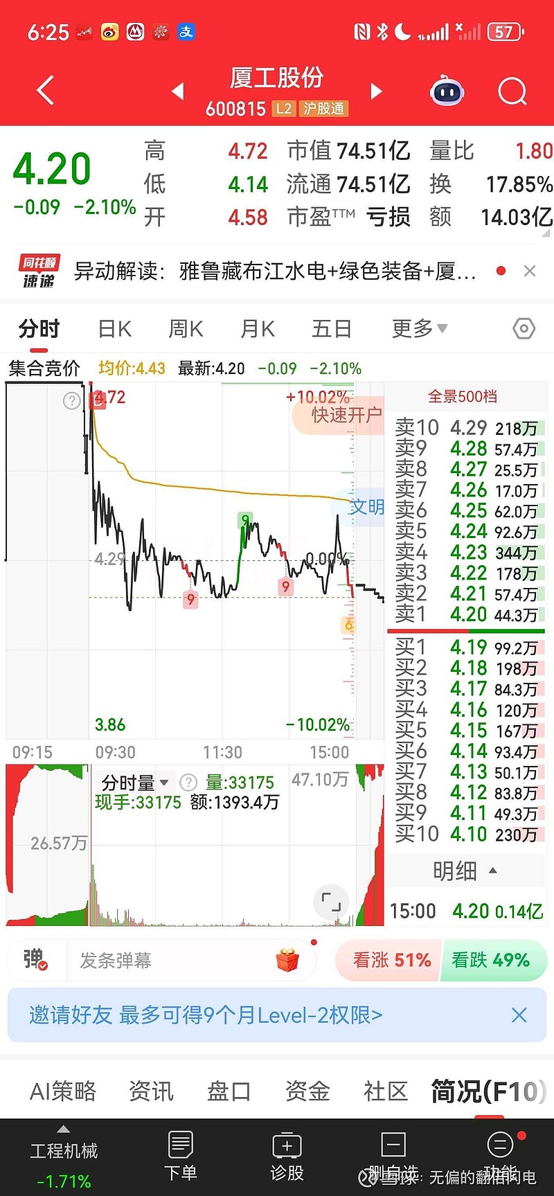 $厦工股份(SH600815)$