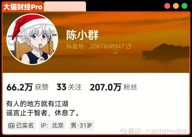 被传喝茶的陈小群,抖音只剩3条,也用抖音简介间接辟谣: