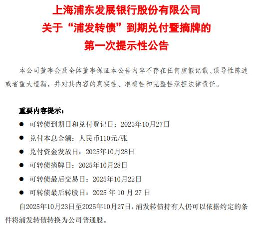浦发转债当前余额302亿,到期日2025年10月28日,剩余期限42天。