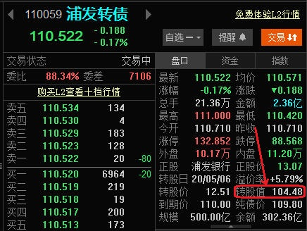 所以这很容易计算浦发转债转股后这个110元的盈亏平衡点,即110/(100/12.51)=13.76元。