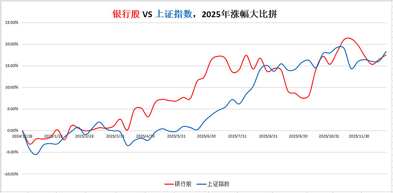 一、银行股因为过去几年的连续高涨幅,2025年确实跑输了大盘指数;