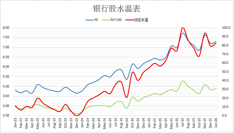 银行股整体估值水温:
