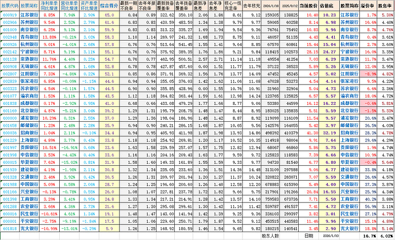 大佬刘2026年银行股逮鱼的主策略仍将是集火优秀环太湖城商行,持股收息、享受成长。
