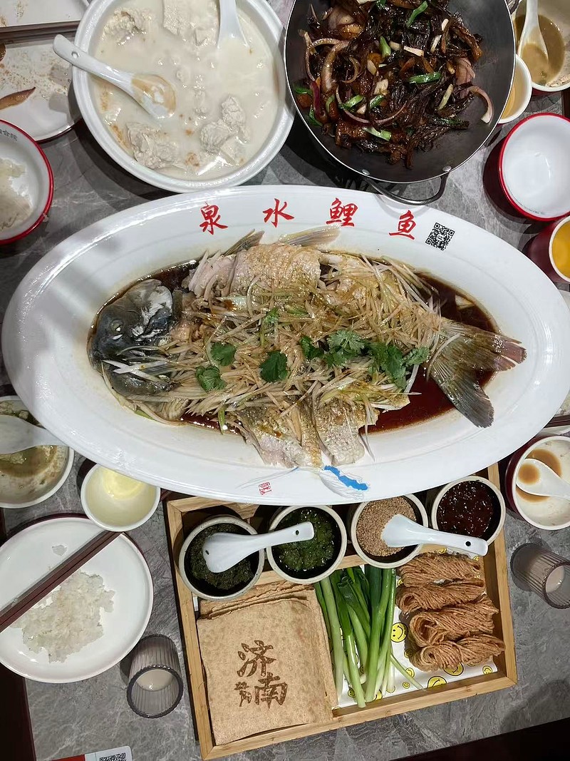 比如我们这波去济南,本来想逛一下夜市灯会,结果当天晚上济南下雪,又冷又湿,只好找了家餐馆,吃点东西。第二天逛趵突泉还好,冬天去大明湖真不是时候。