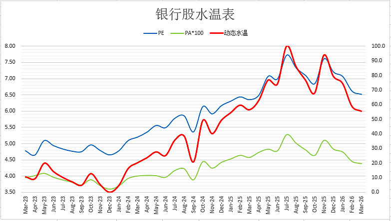 银行股整体估值水温: