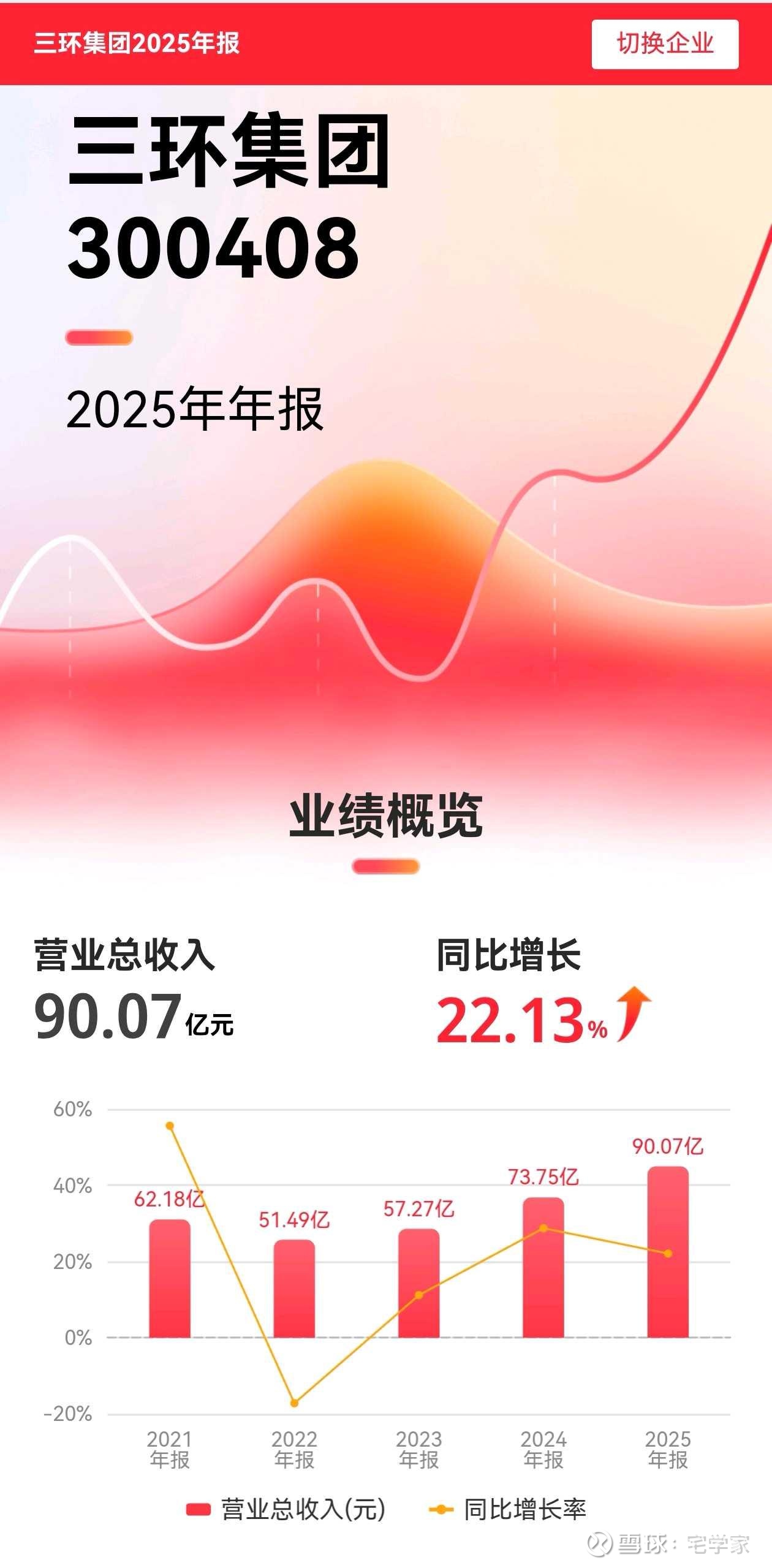 在电子元件与陶瓷材料行业周期波动加剧、国产替代与高端化双线并行的背景下,三环集团2025年交出一份兼具增长韧性、盈利质量、财务安全的成绩单。全年实现营收90.07亿元(同比+22.13%)、归母净利润26.18亿元(同比+19.54%),核心财务指标持续领跑行业,更以“材料+结构+功能”的战略定力,在行业格局重构中筑牢长期壁垒。本文立足财报数据,从行业趋势、经营逻辑、财务安全性、成长潜力四大维度,拆解三环集团的核心价值与潜在风险。