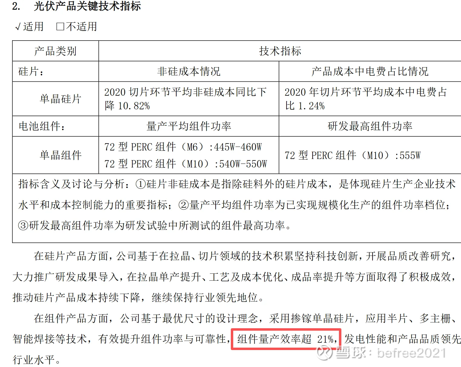 经第三方权威认证测试机构 TÜV莱茵测试,公司组件转换效率已达到 22.38%(因为2020年年报中提到组件效率超过21%,所以,这个22.38%的数据应该不是量产效率)。