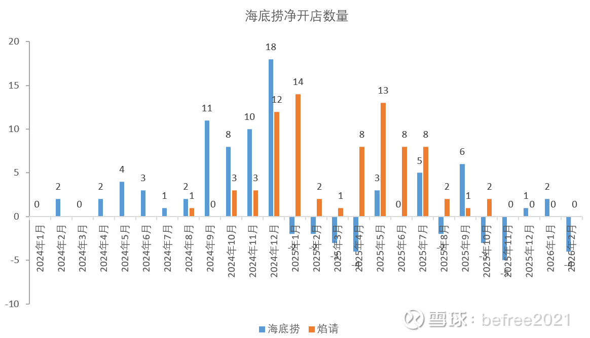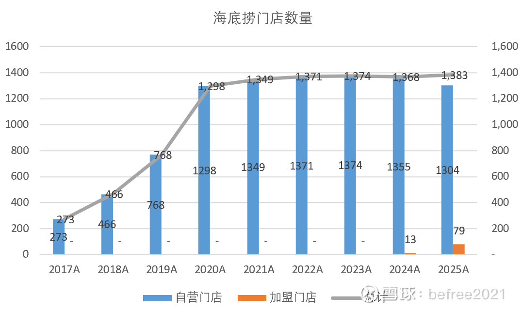 2025年全年门店数量增加15家,自营减少51家,加盟增加66家。拓店的压力依然非常大。但这里有一个点需要注意,海底捞整体的门店数量变化不大,但是有开有关,实质上是把优质的门店留下,是夯实经营基础的举措。