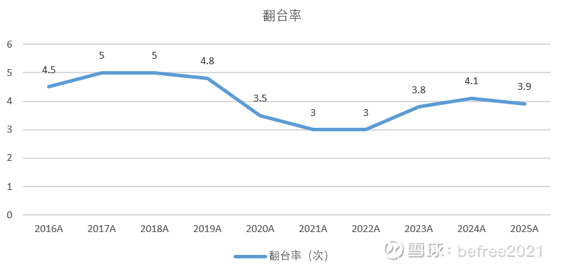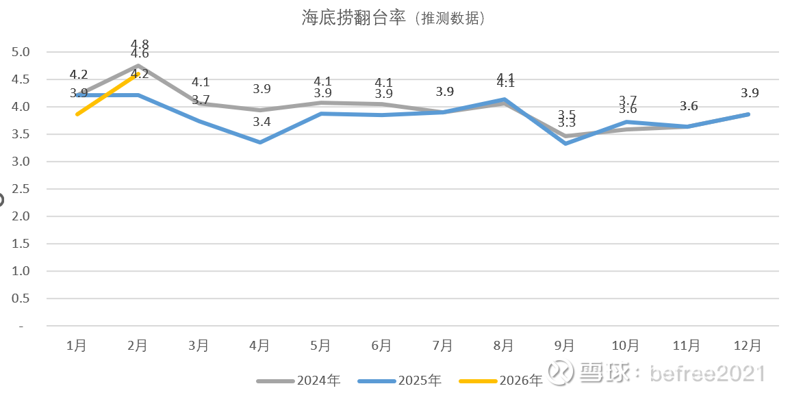 2025年翻台率3.9次,相比2024年下降。但是看半年度的数据可知,25H2的翻台率开始持平或高于24H2,绝对值也已经回升至4.0了。26年1月和2月的翻台率同比也是增长的。从趋势上看,自25H2开始逐渐改善,26年1-2月重回增长。