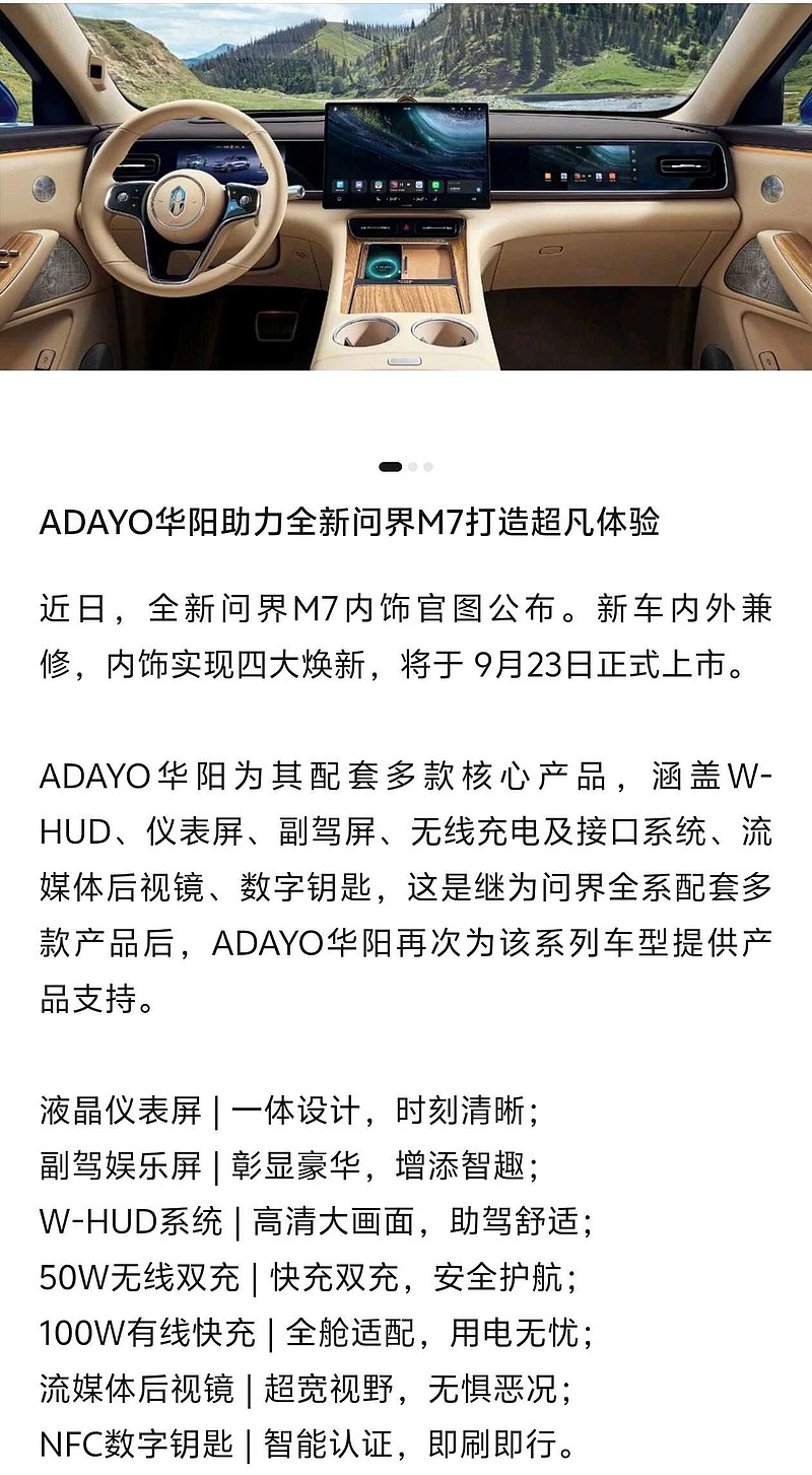 这周问界M7开启小订,取得了不错的订单量,华阳集团作为供应商终于一改之前拖拖拉拉遮遮掩掩的不公布配套情况,这次第一时间发公众号表明了自己的配套情况,大致算了一下,单车价值量应该在4000-5000块,不过这车得等到9月底才正式上市,贡献业绩得去到4季度了。