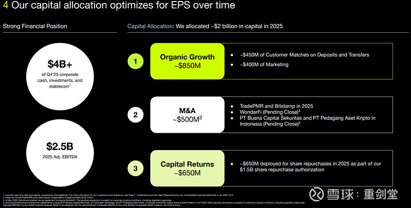 国外的公司好像大部分到年底会回顾captial allocation情况,会讨论下个财年费用的预算情况,像截图的hood ,ceo在call上提到cfo给他推荐了《局外人》这本重视资本分配的书,所以他们真的很重视这件事,该怎么投资,并购,分红,回购。。