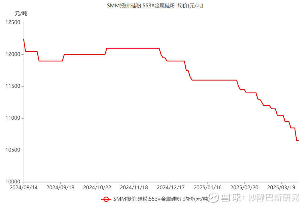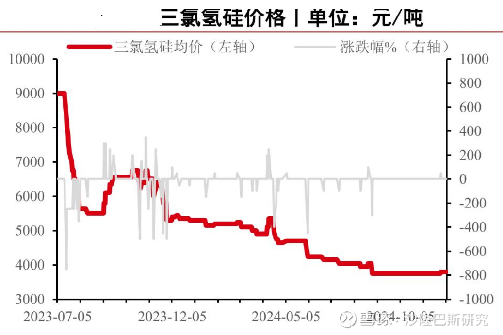 三氯氢硅的价格波动的确较大,从2023年的9000元/吨,到2024年已经下降到4000元/吨。