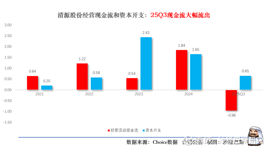 公司2022-2024年期间经营现金流持续为正,2024年达到1.84亿元,2025Q3大幅流出近1亿元。
