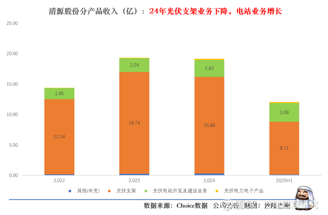 2025年上半年光伏支架贡献了超过七成的收入。占比变化是公司电站业务的崛起。