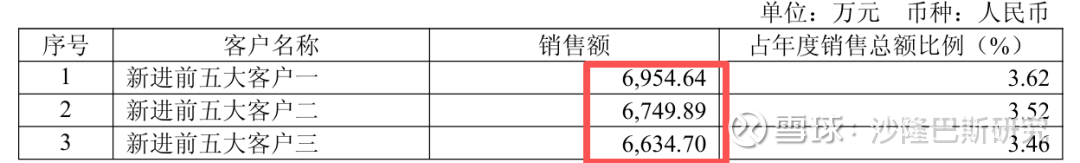 2024年年报显示,公司的前五大客户中新进了三个客户,单个客户销售额均在6700万左右。