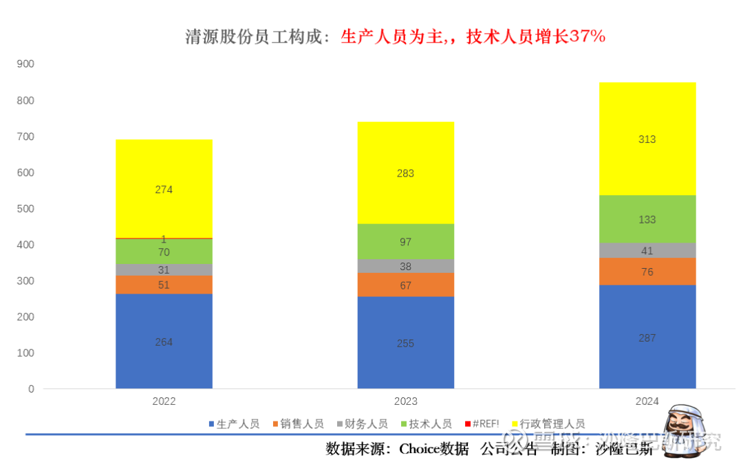 公司的员工最近三年持续增长,2024年为850人,同比增长15%。公司员工主要为生产人员,不过2024年技术人员为133人,同比增长37%。2024年公司人均薪酬24.14万元,同比略有下降,人均创收225.78万元,人均创利10.73万元,人均创利大幅下降。