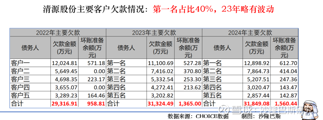 因为公司没有披露前五大客户情况,我们只能从主要欠款客户找一些端倪。从主要欠款客户看,第一名客户长期占比(占主要欠款)超过4成,且在2023年略有波动。主要欠款2024年与2023年基本差不多,体现出公司营收的波动。