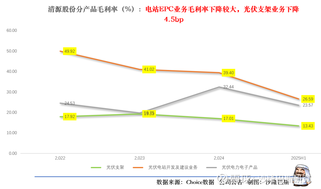 更要命的是公司的EPC电站业务,毛利率才从2022年的49.92%下降到2025H1的26.59%,足足下降一半。花大心思在,做的越多越不挣钱。