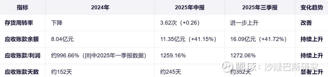 公司的应收账款持续上升,2024年约8个亿左右,25H1增长41.15%到11.35亿元,2025Q3继续上升到16.09亿元。应收账款天数从2024年的152天,上升到2025Q3的352天。