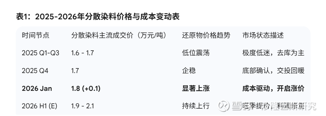 经过对中国分散染料市场长达十年的价格波动、产能演变及上下游供需关系的详尽梳理,结合2025年全年及2026年初的最新高频数据,本报告认为:中国分散染料行业已在2025年第四季度完成了“十年大底”的筑底过程,并于2026年1月开启了基于成本推动与库存回补双重逻辑的右侧修复行情。