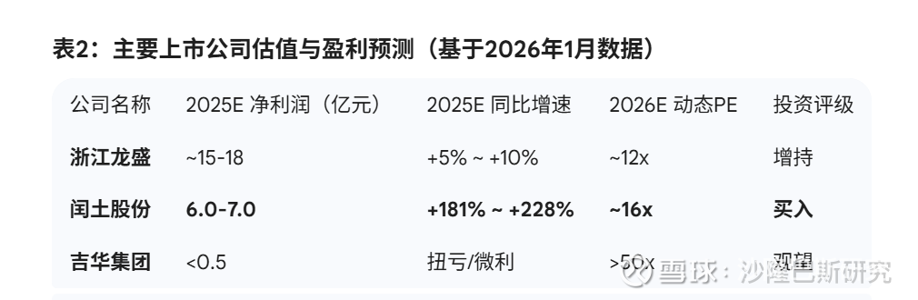 当前的行业状态可以概括为:价格触底回升,盈利弹性释放,估值处于低位,供需弱平衡向好。 2026年将是行业从“去库存”转向“补库存”、从“亏损/微利”转向“合理利润”的关键修复年。