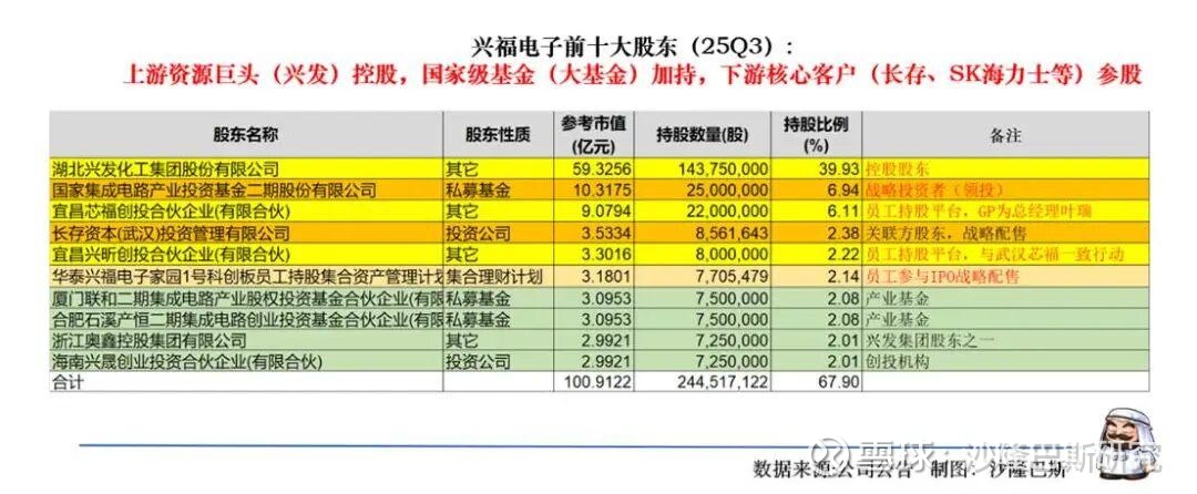 SK海力士(无锡)投资有限公司在2021年12月作为战略投资者出资4800万元入股,截至IPO发行后(2025H1数据),持股约1.39%。作为全球顶级存储芯片厂商,SK海力士的入股加强了其与兴福电子的供应链合作。