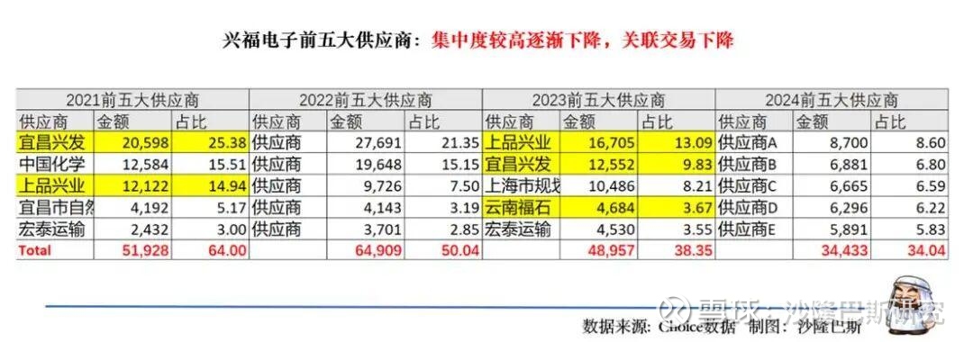 公司的前五大供应商集中度较高,但是集中度逐年下降,2021-2024年前五大供应商的占比分别为64%、50%、38.35%和34%。2023年下降比较明显,不过采购金额也下降比较明显。
